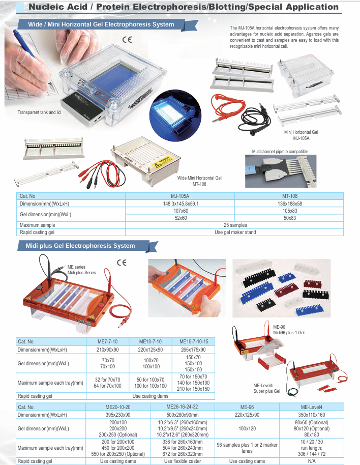 Electrophoresis Systems are core tools for DNA, RNA, and protein analysis in molecular biology, genomics, proteomics, diagnostics, and biotechnology. Our range includes agarose gel units, PAGE systems, blotting equipment, power supplies, gel documentation systems, and electrophoresis accessories. Designed for PCR product verification, sequencing prep, mutation detection, and protein separation, these systems ensure high resolution, reproducibility, and efficiency in research, clinical labs, and pharmaceutical testing